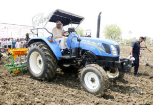 मुख्यमंत्री ने बीजों एवं मिट्टी की पूजा अर्चना कर खेतों में ट्रेक्टर से बुआई की