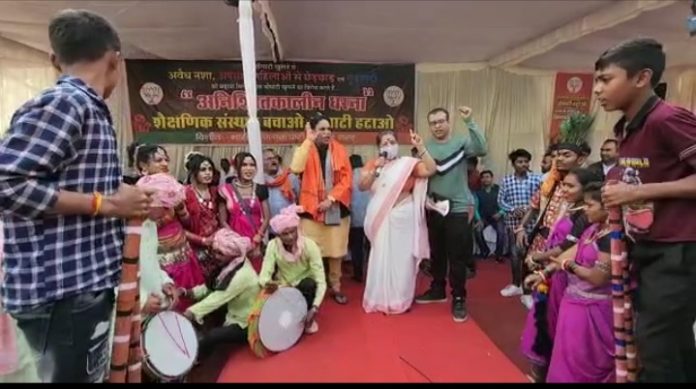 रायपुर जिवराखन लाल उसारे छत्तीसगढ़ ग्रामीण न्युज एजुकेशनल हब साइंस कॉलेज से चौपाटी हटाने के विरोध में बड़ी संख्या में समर्थन देने पहुंचे । स्कूल और कॉलेज दोनो संस्थानों से छात्र और छात्राएं चौपाटी हटाओ अभियान में शामिल। शैक्षणिक संस्थानों का बंद करना होगा व्यवसाईकरण की मांग को लेकर पैरी के दान संस्था के बच्चों ने किया प्रदर्शन। बाजे गाजे के साथ मौके पर पहुंचे। छत्तीसगढ़ी परिधान पहने हुए बच्चों ने निशान बाजा बजाकर गेड़ी नृत्य भी किया। पूर्व मंत्री मूणत ने कहा बच्चों के भविष्य से खिलवाड़ करने का निर्णय बर्दाश्त नहीं किया जाएगा। महादान पर्व पर बहरी सरकार को बच्चों की पुकार सुनने का वक्त नहीं है। अहंकार ज्यादा दिन टिकता नहीं है।