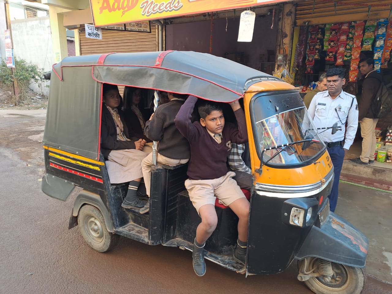 क्षमता से अधिक छात्र-छात्राओं को परिवहन करने वाले स्कूली ऑटो के विरुद्ध यातायात पुलिस की विशेष अभियान कार्रवाई