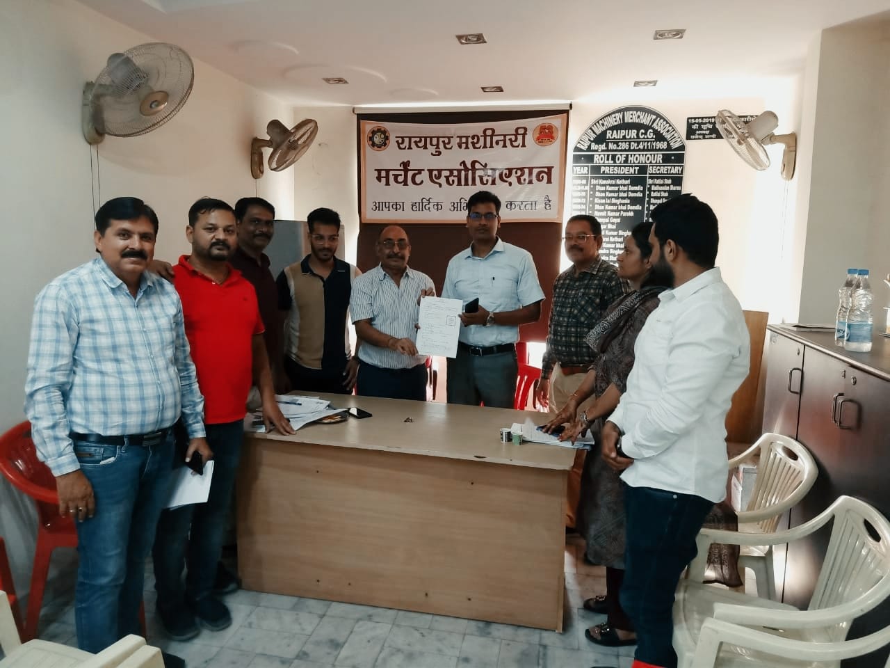 रायपुर मशीनरी मर्चेंट एसोसिएशन के अध्यक्ष एवं चेंबर के कार्यकारी अध्यक्ष श्री राजेन्द्र जग्गी ने बताया कि नियमितीकरण को लेकर आज छत्तीसगढ़ चेम्बर ऑफ कॉमर्स एंड इंडस्ट्रीज, रायपुर मशीनरी मर्चेंट एसोसिएशन एवं नगर पालिक निगम के संयुक्त तत्वाधान में शिविर का आयोजन एसोसिएशन के कार्यालय में किया गया ।