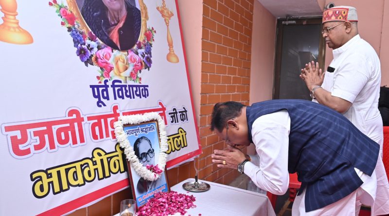 मुख्यमंत्री श्री साय ने रायपुर की पहली महिला विधायक स्वर्गीय रजनी ताई उपासने के निवास पहुंचकर अर्पित की श्रद्धांजलि