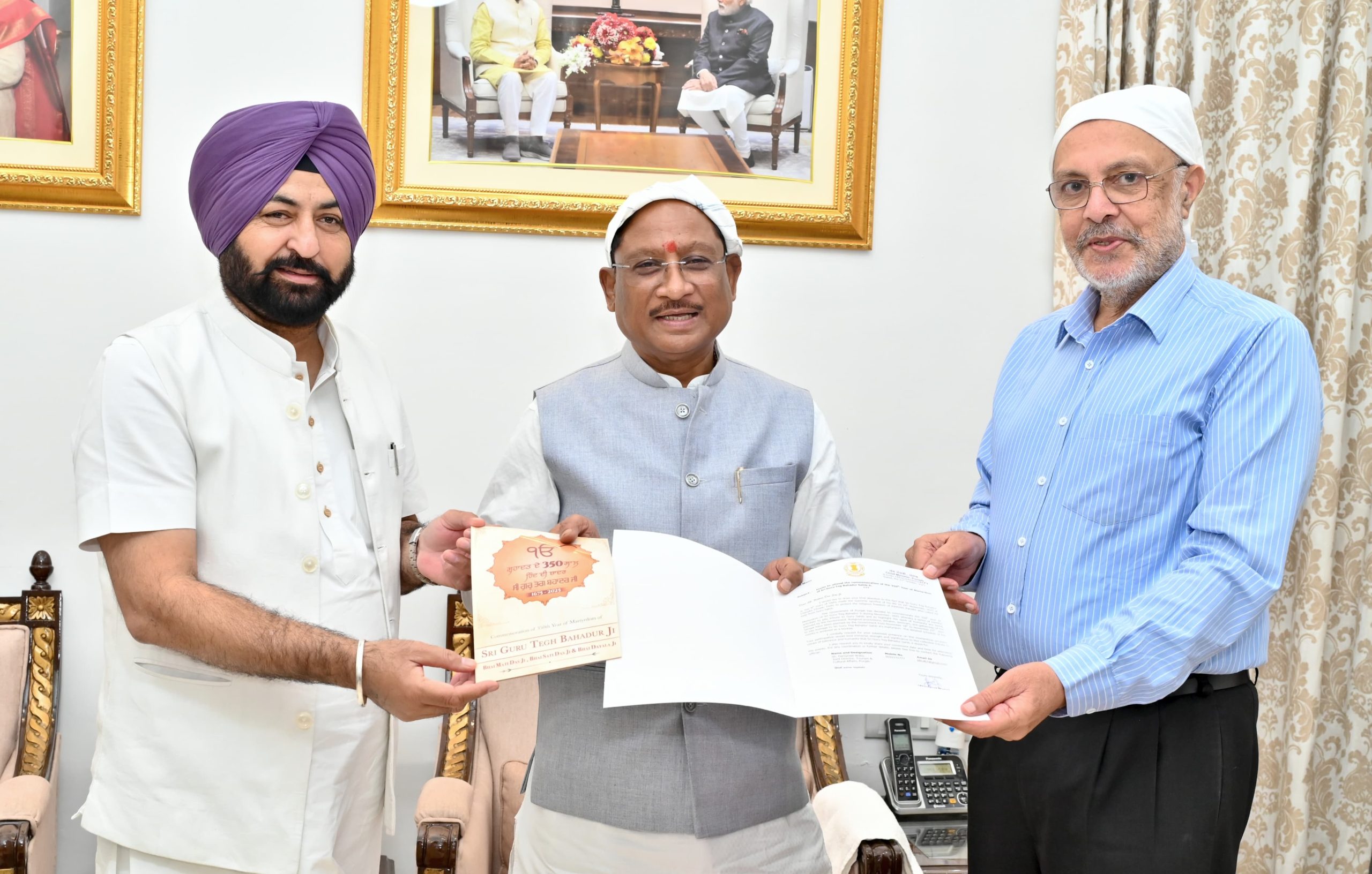 मुलाकात के दौरान दोनों मंत्रियों ने मुख्यमंत्री श्री साय को 9वें सिख गुरु श्री गुरु तेग बहादुर जी के 350वें शहीदी दिवस के उपलक्ष्य में आयोजित होने वाले विशेष कार्यक्रम में शामिल होने के लिए आमंत्रित किया। उन्होंने बताया कि यह आयोजन गुरु तेग बहादुर जी के बलिदान, त्याग और मानवता के प्रति उनके संदेश को जन-जन तक पहुँचाने के उद्देश्य से किया जा रहा है। इस आयोजन में देशभर से श्रद्धालुओं, संत महात्माओं और विभिन्न राज्यों के गणमान्य नागरिकों के सम्मिलित होने की संभावना है।