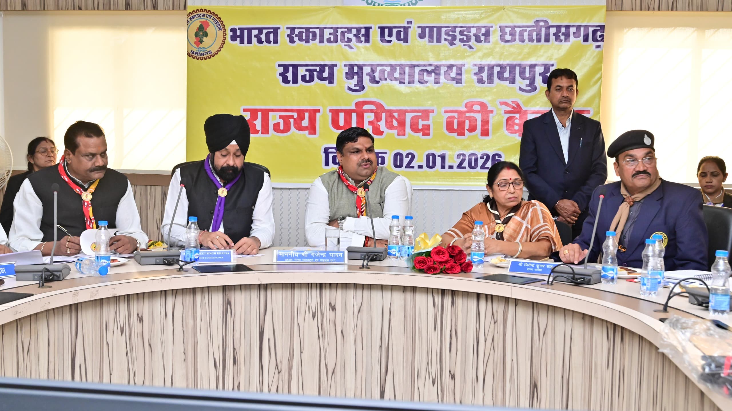 रायपुर, 02 जनवरी 2026/भारत स्काउट्स एवं गाइड्स, छत्तीसगढ़ राज्य परिषद की महत्वपूर्ण बैठक आज मंत्रालय, महानदी भवन नवा रायपुर में संपन्न हुई। बैठक की अध्यक्षता श्री गजेन्द्र यादव, स्कूल शिक्षा मंत्री एवं अध्यक्ष, छत्तीसगढ़ भारत स्काउट्स एवं गाइड्स ने की। बैठक का मुख्य केंद्रबिंदु छत्तीसगढ़ में आयोजित होने वाली प्रथम राष्ट्रीय रोवर-रेंजर जम्बूरी 2026 रहा। यह जम्बूरी बालोद जिले के ग्राम दुधली में 9 जनवरी से 13 जनवरी 2026 तक आयोजित की जाएगी। बैठक में जम्बूरी की तैयारियों, कार्यक्रम संरचना, प्रतिभागियों की आवासीय व्यवस्था, सुरक्षा, परिवहन, अनुशासन, सांस्कृतिक गतिविधियों एवं स्वयंसेवकों की भूमिका पर विस्तृत चर्चा की गई।