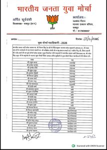 भाजपा युवा मोर्चा रायपुर शहर का गोपी शर्मा को जिला मंत्री नियुक्त किया गया