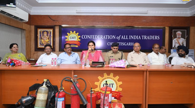 देश के सबसे बड़े व्यापारी संगठन कन्फेडरेशन ऑफ ऑल इंडिया ट्रेडर्स (कैट) के राष्ट्रीय वाइस चेयरमेन एवं राष्ट्रीय व्यापारी कल्याण बोर्ड (भारत सरकार) के सदस्य श्री अमर पारवानी, छत्तीसगढ़ इकाई के चेयरमेन श्री जितेंद्र दोशी, श्री विक्रम सिंहदेव, अध्यक्ष श्री परमानंद जैन, महामंत्री श्री सुरिन्दर सिंह, कोषाध्यक्ष श्री अजय अग्रवाल, कार्यकारी अध्यक्ष श्री राजेंद्र जग्गी, श्री राम मंधान, श्री वासु मखीजा, श्री भरत जैन, श्री राकेश ओचवानी, श्री शंकर बजाज ने संयुक्त रूप से बताया कि देश के कैट एवं अग्निशमन विभाग के संयुक्त तत्वाधान में एक दिवसीय कार्यशाला का आयोजन कैट के प्रदेश कार्यालय में किया गया। श्रीमति अनिमा एस कुजूर, संभागीय सेनानी एवं नोडल अधिकारी एसडीआरएफ रायपुर संभाग रायपुर छत्तीसगढ़, श्री पुष्पराज सिंह, जिला सेनानी एवं जिला अग्निशमन अधिकारी नगर सेना रायपुर छत्तीसगढ़, श्री लिलेश्वर सिंह राजपूत, निरीक्षक, स्टेशन प्रभारी, अग्निशामन केंद्र टिकरापारा रायपुर छत्तीसगढ़, की संयुक्त टीम द्वारा कन्फेडरेशन ऑफ ऑल इंडिया ट्रेडर्स (कैट) एवं व्यापारिक संगठनों के पदाधिकारीगण व्यापारी उपस्थित रहे। जिनकों प्रारंभिक अग्निदुर्घटना से बचाव/सुरक्षा के संबंध में संगोष्ठि के माध्यम से जागरूक करने के साथ ही मॉक ड्रील के माध्यम से प्रशिक्षण दिया गया।