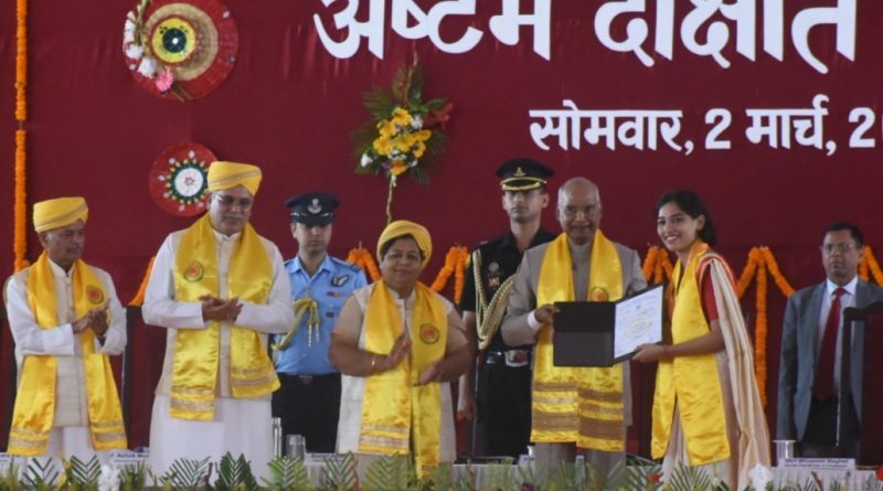 गुरु घासीदास सेंट्रल विश्वविद्यालय के दीक्षांत समारोह में राष्ट्रपति रामनाथ कोविंद ने टॉपर को मेडल और उपाधि दिया। 94.9 अंक लाने वाली क्वीनी यादव को राष्ट्रपति ने सबसे पहले मेडल और उपाधि दिया। क्वीनी यादव सत्र 2018-19 की यूनिवर्सिटी टॉपर है, उसने 2 मेडल लिया है। वहीं दीक्षांत समारोह में मेडल पाने वालों में बेटियों की संख्या ज्यादा है। महामहिम राष्ट्रपति रामनाथ कोविंद ने इस पर खुशी जाहिर की। अपने संबोधन में राष्ट्रपति ने कहा कि स्वर्ण पदक प्राप्त करने में बेटियों की संख्या ज्यादा है। यह बेहद ही प्रसन्नता वाली बात है। मुख्यमंत्री भूपेश बघेल ने भी खुशी जताते हुए कहा कि मेडल लेने में छात्राओं ने बाजी मारी है, उन्हें खूब बधाई। इसमें अनुसूचित जाति-जनजाति की छात्राएं हैं यह गर्व की बात है।