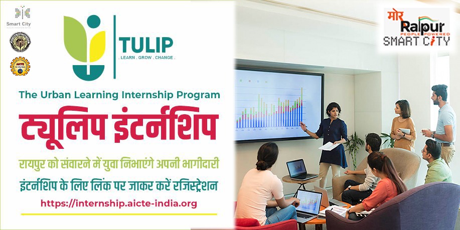 रायपुर । भारत सरकार के ‘ट्यूलिप इंटर्नशिप’ कार्यक्रम के अंतर्गत शहर विकास योजनाओं से युवाओं को जोड़कर रियल टाइम अनुभव उपलब्ध कराने के लिए रायपुर स्मार्ट सिटी लि. ने विभिन्न विषयों पर 250 पोस्ट पर आवेदन आमंत्रित किए हैं। रायपुर स्मार्ट सिटी लि. के महाप्रबंधक तकनीकी श्री एस.के. सुंदरानी ने बताया कि सभी पोस्ट के लिए आवेदन प्रक्रिया शुरू हो गई है।