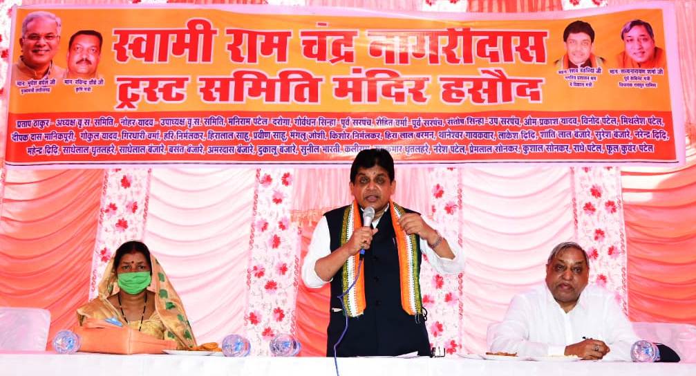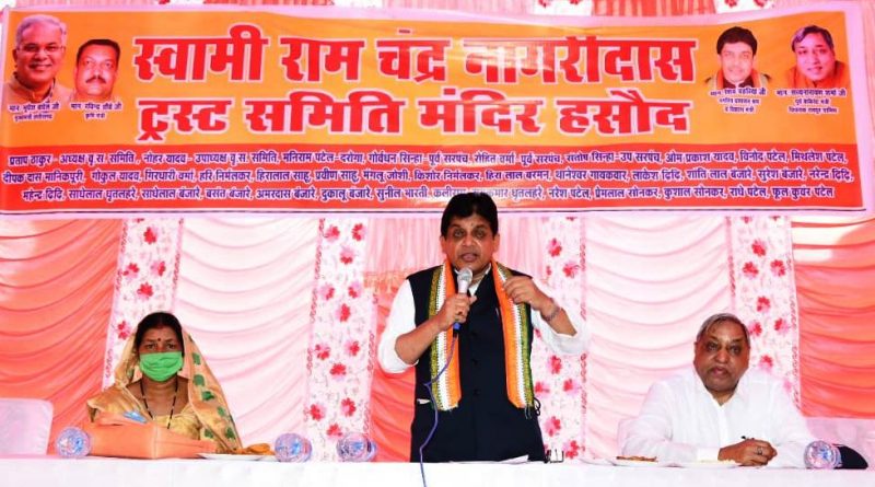 नगरीय प्रशासन मंत्री डॉ. डहरिया ने कहा कि सरकार की महत्वाकांक्षी सुराजी गांव योजना में नरवा, गरवा, घुरूवा, बाड़ी के तहत गांवों के पारंपरिक स्वरूप को सहेजने का काम किया जा रहा है। मवेशियों के संरक्षण एवं संरक्षण के लिए प्रत्येक ग्राम पंचायतों में गौठान निर्माण किया जा रहा है। इसका संचालन गांव के ही लोगों द्वारा गठित गौठान समिति द्वारा किया जा रहा है। उन्होंने कहा कि श्री बघेल के नेतृत्व में सरकार गोधन न्याय योजना लाकर किसानों और पशुपालकों से दो रूपए प्रति किलोग्राम की दर पर गोबर की खरीदी कर रही है। इससे लाखों पशुपालकों को लाभ होगा। इस योजना के तहत पहली किस्त की राशि 5 अगस्त को पशुपालकों के खातों में अंतरित की गई है। अब 20 अगस्त को राजीव गांधी की जंयती के अवसर पर गोधन न्याय योजना के तहत गोबर खरीदी की दूसरी किस्त की राशि कसानों और पशुपालकों के खातों मंे जमा करायी जाएगी। डॉ. डहरिया ने कहा कि मंदिर हसौद के विकास के लिए कोई कमी नहीं होगी। राज्य सरकार भी शहरों के साथ-साथ गांवों के विकास के लिए भी तत्पर है।